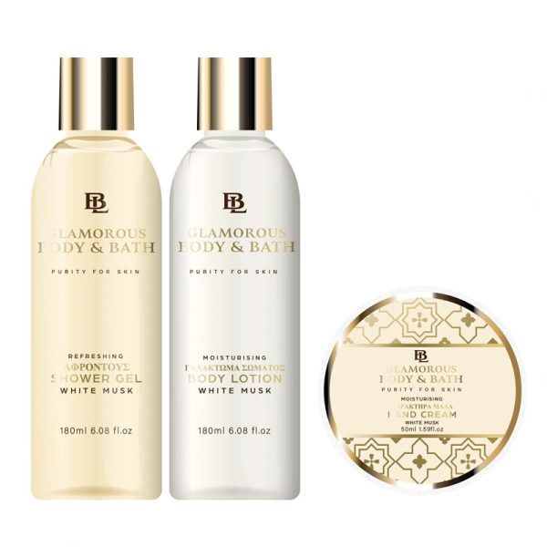 Glamorous Gold High Heel – σετ δώρου σε σχέδιο γόβα και άρωμα white musk, που περιέχει 180ml Shower Gel 180ml Body Lotion και 50ml κρέμα χεριών.